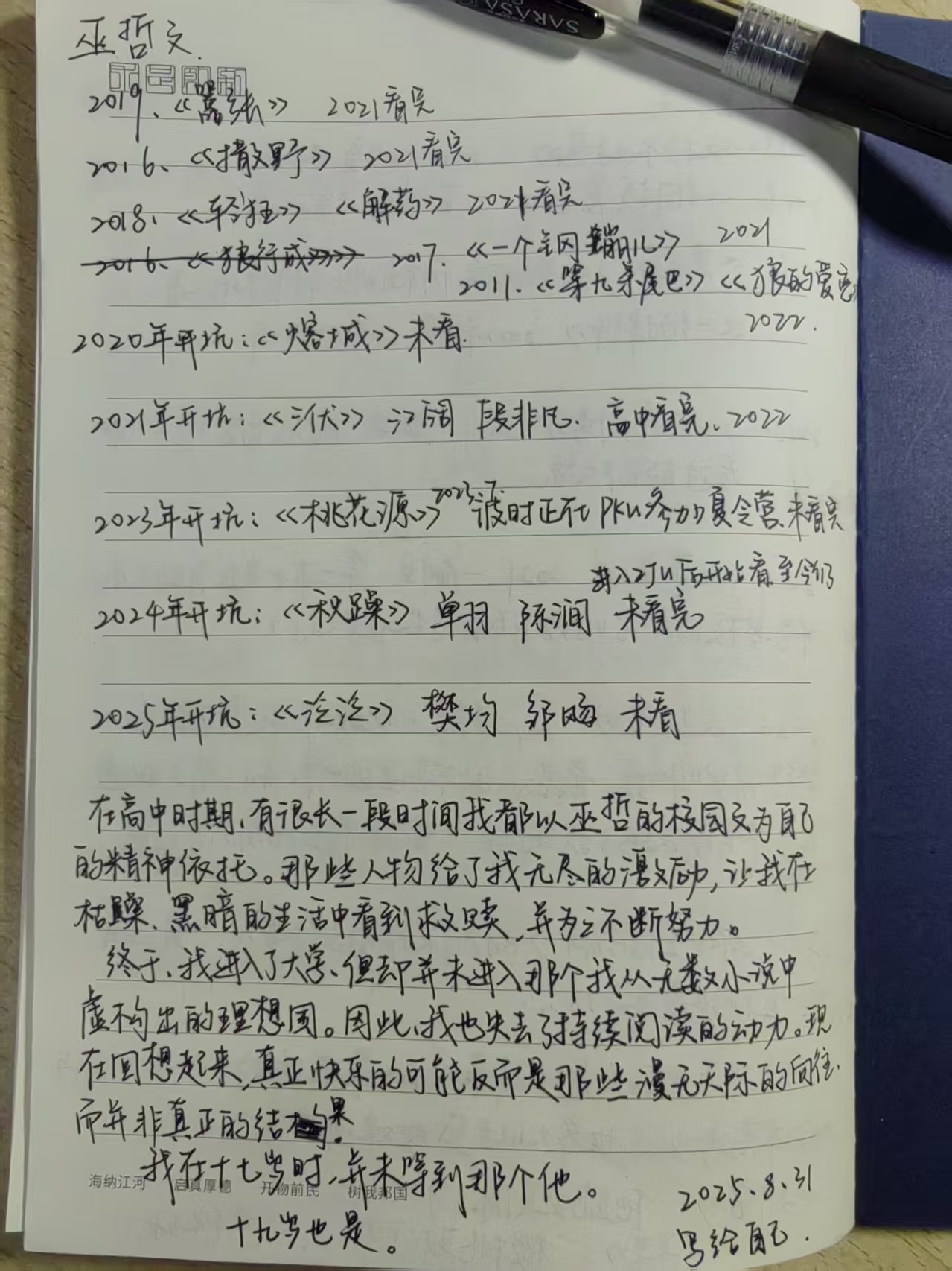 就像我在三个月前写下的那样——“在高中时期,有很长一段时间我都以巫哲的校园文为自己的精神依托。那些人物给了我无尽的激励,让我在枯燥,黑暗的生活中看到救赎,并为之不断努力。