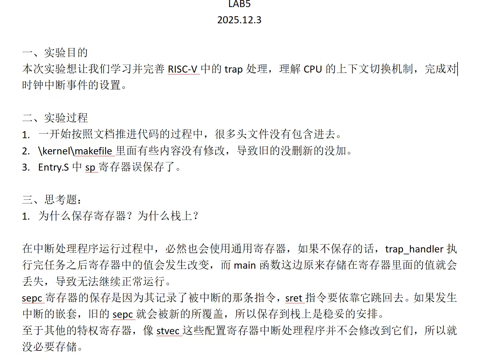 概统大物两个小测,都是前一天才赶着把课后习题全刷了一遍。lab5从周三上午九点写到一点还没干完,几分钟解决午饭后赶到教室验收,验收完之后立马写报告,再复习下一场测试。